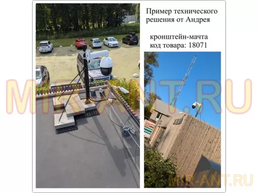 - Наличие жёстких растяжек в виде трубок и качающегося основания позволяют крепить кронштейн-мачту на кровле с различным наклоном.