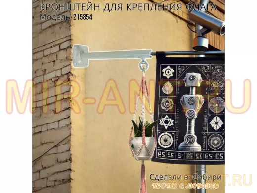 Кронштейн для крепления одного флага на стене угол 90гр вылет 35см "ФЛАГОКРЕП-215854" сталь, серый - MIR-ANT.RU