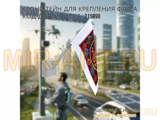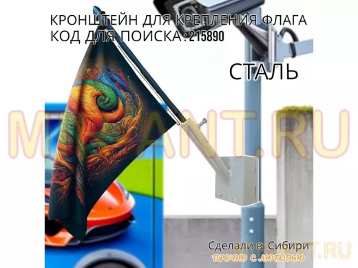 • Кронштейн позволяет быстро и прочно зафиксировать флаг или вазон на столбе без его сверления.