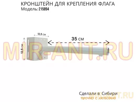 Кронштейн для крепления флага на столб угол 90 градусов "ФЛАГОКРЕП-215894" вылет 35см, сталь, белый - MIR-ANT.RU