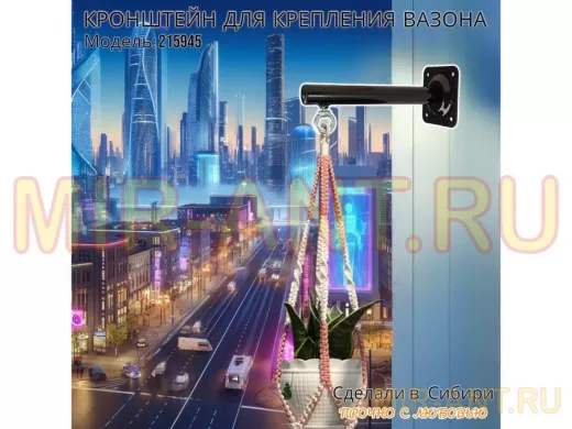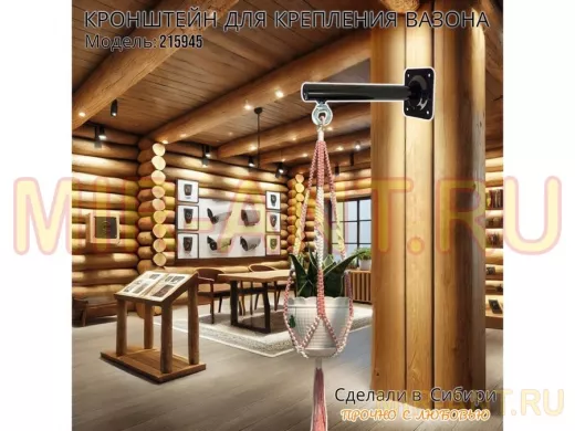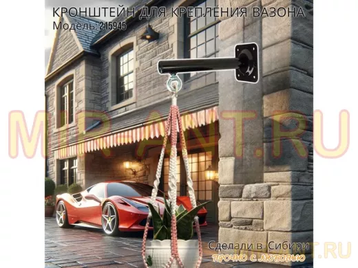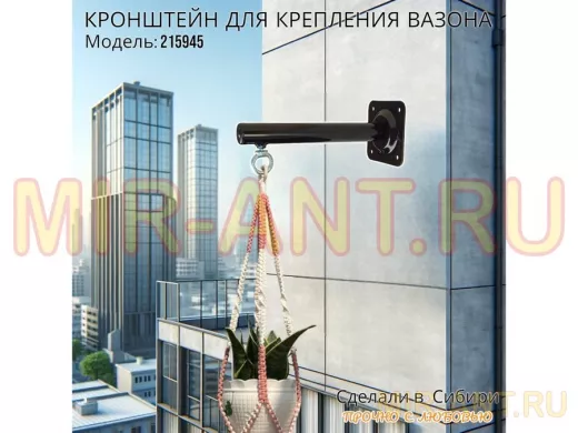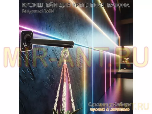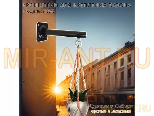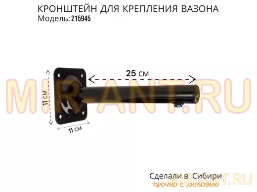 Кронштейн для крепления кашпо, вазона на стене угол 90гр вылет 25см "ПРОСЕКИНО-215945" сталь, черный - MIR-ANT.RU