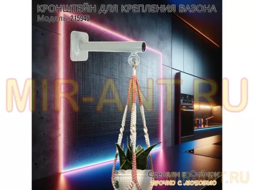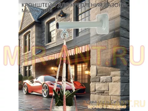 Кронштейн для крепления кашпо, вазона на стене угол 90гр вылет 25см "ПРОСЕКИНО-215946" сталь, серый - MIR-ANT.RU