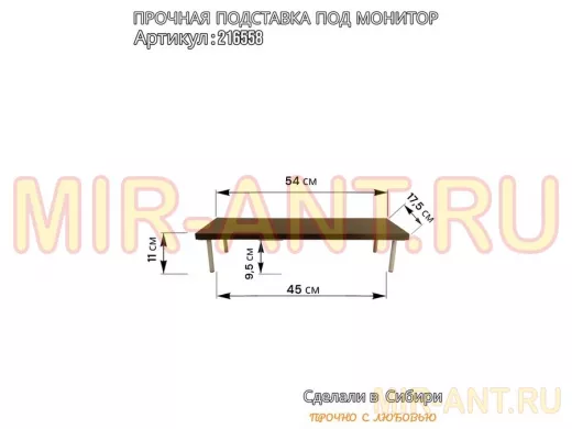 Подставка под монитор на стол 54х17,5см высота 11см, венге "ABBIKUS-216558" серые ножки - MIR-ANT.RU