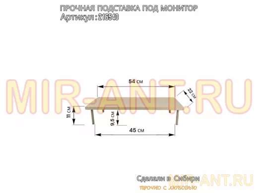 Подставка под монитор на стол 54х22см высота 11см, сосна выбеленная "ABBIKUS-216540" серые ножки - MIR-ANT.RU