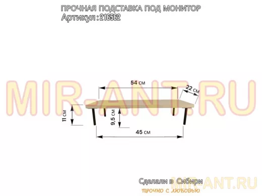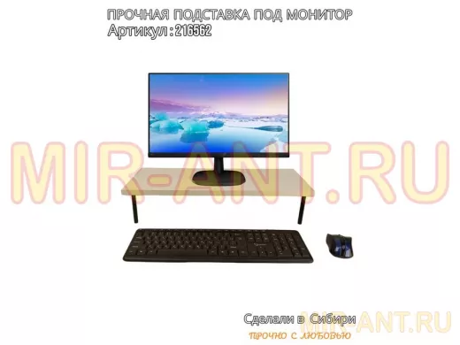 Подставка под монитор на стол 54х22см высота 11см, сосна выбеленная "ABBIKUS-216562" черные ножки - MIR-ANT.RU