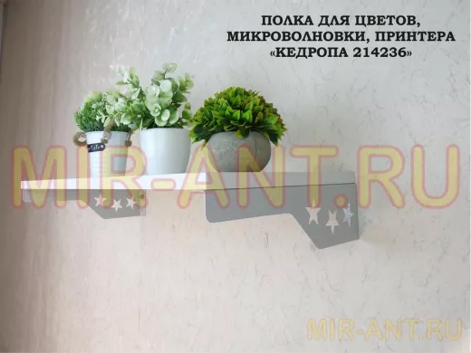 Полка предназначена для гостинной (можно разместить цветы, сувениры, фотографии), для коридора (под ключи, шапки, шарфы и перчатки), для детской (под рисунки, поделки, книги), для кухни (под микроволновку, чайник, посуду) и др.
