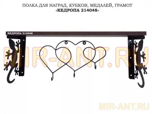 Полка для наград, кубков, медалей, грамот "КЕДРОПА-214048 гекон"размер 15х60х24 см, венге с сердцами - MIR-ANT.RU