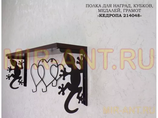 В корзину Купить в 1 клик Полка для наград, кубков, медалей, грамот "КЕДРОПА-214048 гекон"размер 15х60х24 см, венге с сердцами