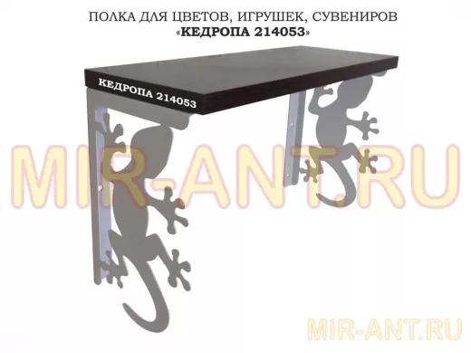 Полка для цветов, игрушек,сувениров "КЕДРОПА-214053 гекон" размер 15х40х24 см, серый, венге - MIR-ANT.RU