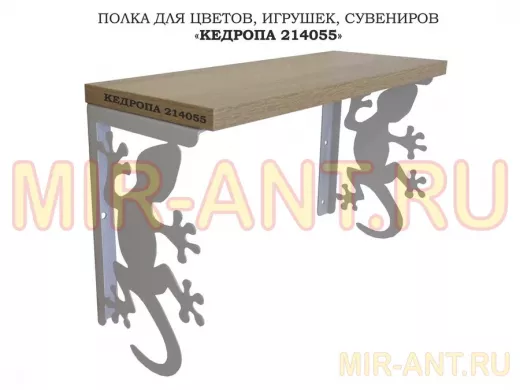 Полка для цветов, игрушек,сувениров "КЕДРОПА-214055 гекон" размер 15х40х24 см, серый, дуб сонома - MIR-ANT.RU