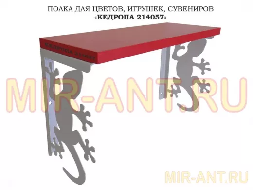 Полка для цветов, игрушек,сувениров "КЕДРОПА-214057 гекон" размер 15х40х24 см, серый, красный - MIR-ANT.RU