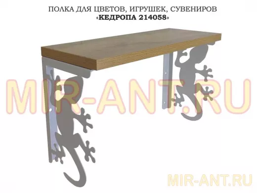 В корзину Купить в 1 клик Полка для цветов, игрушек,сувениров "КЕДРОПА-214058 гекон" размер 15х40х24 см, серый, дуб вотан