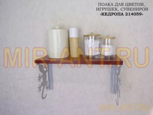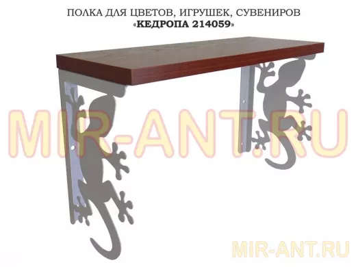 Полка для цветов, игрушек,сувениров "КЕДРОПА-214059 гекон" размер 15х40х24 см, серый, орех итал - MIR-ANT.RU