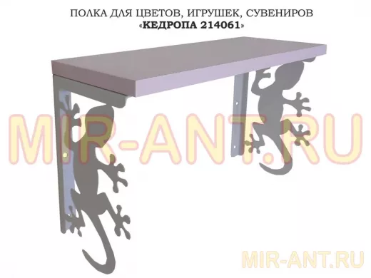Полка для цветов, игрушек,сувениров "КЕДРОПА-214061 гекон" размер 15х40х24 см, серый, лаванда - MIR-ANT.RU