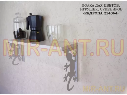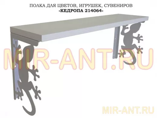 Полка для цветов, игрушек,сувениров "КЕДРОПА-214064 гекон" размер 15х60х24 см, серый, сосна - MIR-ANT.RU