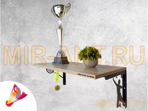 Полка спортивная "БАДМИНТОН ABILOVE-214680" для кубков, наград, медальница, дуб сонома, 30х60см - MIR-ANT.RU