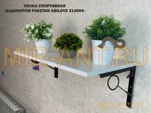Полка спортивная "БАДМИНТОН РАКЕТКИ ABILOVE-214694" для кубков, белая, размер 30х60см - MIR-ANT.RU