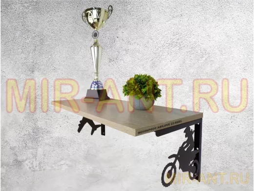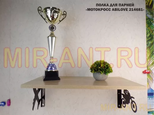 Полка для парней "МОТОКРОСС ABILOVE-214681" для кубков и аксессуаров, дуб сонома, 30х60см - MIR-ANT.RU