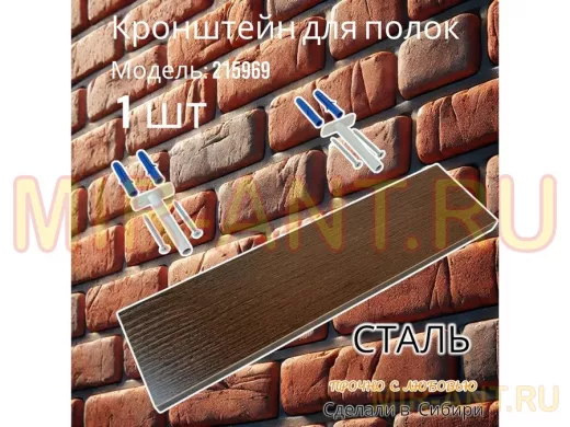 - Кронштейн предназначен для скрытого крепления полок, изготовленных из различных материалов: МДФ, ДСП, дерево, пластик.
