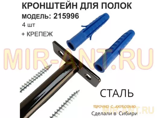 Кронштейн для скрытого крепления полок, 12х90мм, черный, в наборе 4шт "SVORKAMAX-215996" без полки - MIR-ANT.RU
