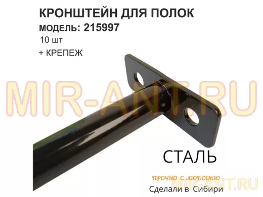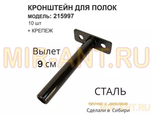 Кронштейн для скрытого крепления полок, 12х90мм, черный, в наборе 10шт "SVORKAMAX-215997" без полки - MIR-ANT.RU
