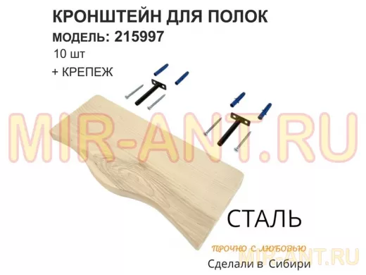 • Кронштейн предназначен для скрытого крепления полок, изготовленных из различных материалов: МДФ, ДСП, дерево, пластик.