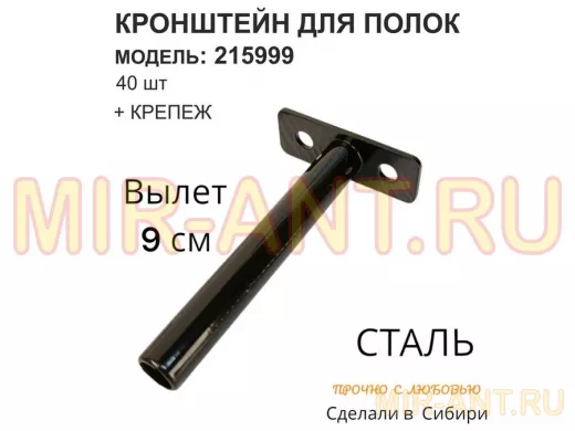 Кронштейн для скрытого крепления полок, 12х90мм, черный, в наборе 40шт "SVORKAMAX-215999" без полки - MIR-ANT.RU