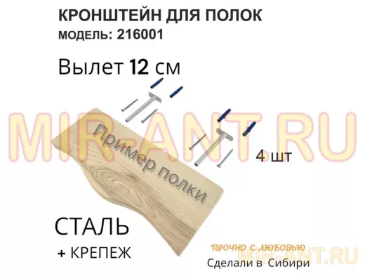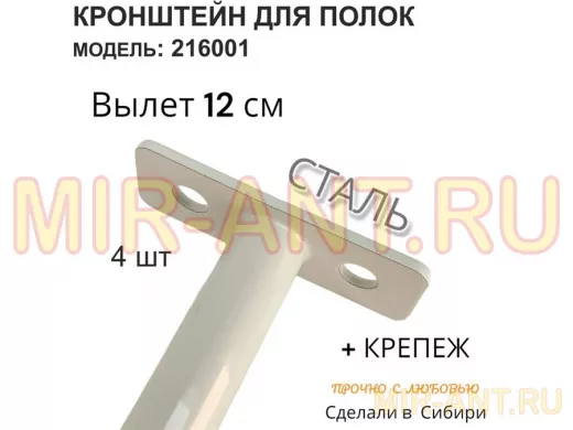 Кронштейн для скрытого крепления полок,12х120мм, серый, в наборе 4шт "SVORKAMAX-216001" без полки - MIR-ANT.RU