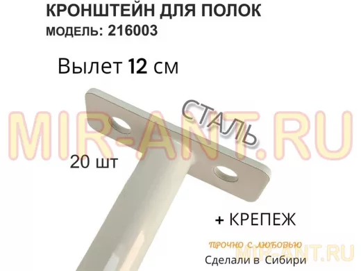 Кронштейн для скрытого крепления полок,12х120мм, серый, в наборе 20шт "SVORKAMAX-216003" без полки - MIR-ANT.RU