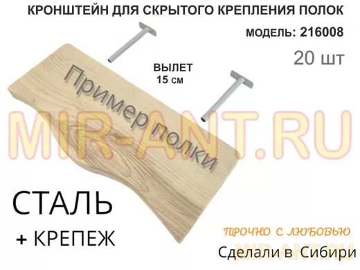 Кронштейн для скрытого крепления полок,12х150мм, серый, в наборе 20шт "SVORKAMAX-216008" без полки - MIR-ANT.RU