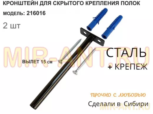 Кронштейн для скрытого крепления полок,12х150мм, черный, в наборе 2шт "SVORKAMAX-216016" без полки - MIR-ANT.RU