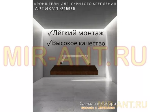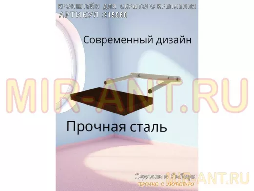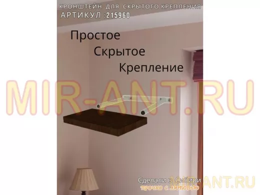 - Кронштейн предназначен для скрытого крепления полок, изготовленных из различных материалов: МДФ, ДСП, дерево, пластик.