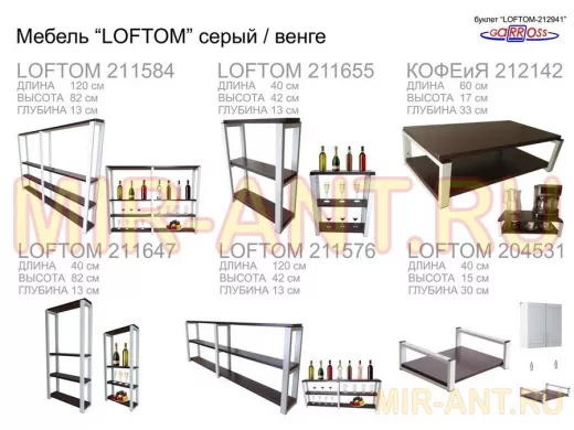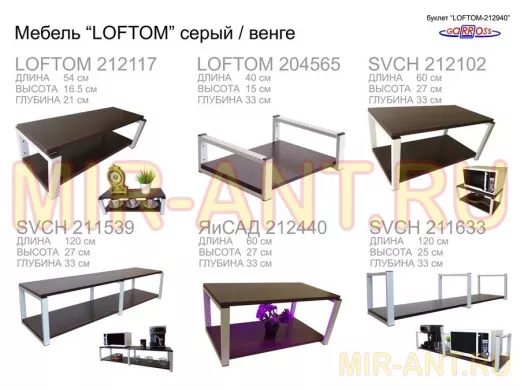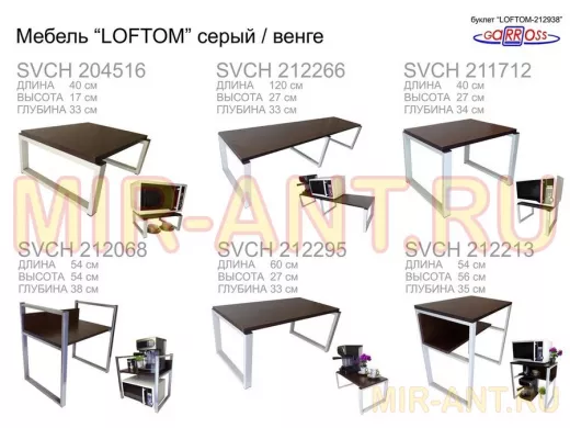 Столик приставной, серый, 55см "LOFTOM 212957" прикроватный стол журнальный с полкой, венге - MIR-ANT.RU