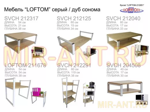 В корзину Купить в 1 клик Столик приставной, серый, 55см "LOFTOM 212958" прикроватный стол журнальный с полкой, дуб