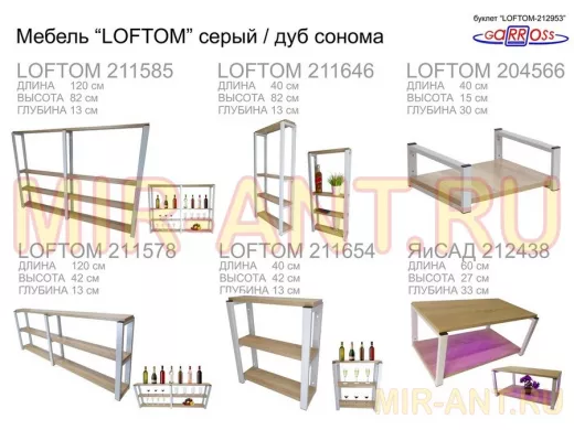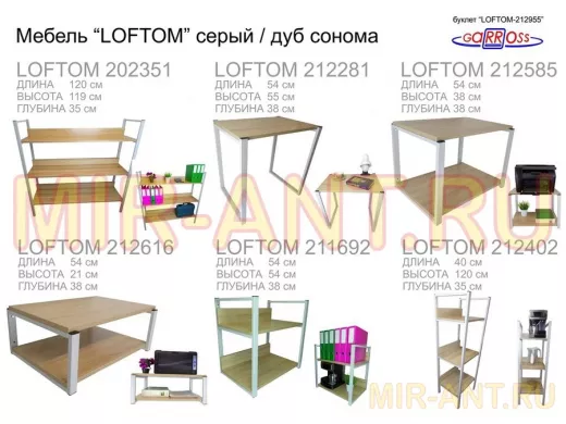 Столик приставной, серый, 55см "LOFTOM 212958" прикроватный стол журнальный с полкой, дуб - MIR-ANT.RU
