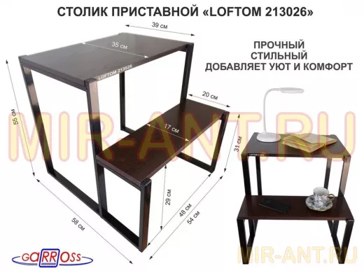 Журнальный приставной столик LOFTOM прекрасно впишется в любое пространство. Столик украсит Вашу гостиную, спальню или коридор. Можно использовать как придиванный кофейный столик, прикроватный столик для завтрака или как стол журнальный приставной. Важно отметить, что прикроватный столик занимает немного пространства, поэтому ему найдётся место даже в самой малогабаритной квартире. Прикроватный/журнальный столик, в стиле Лофт, может быть использован в качестве подставки для цветов и книг, места для работы, места для хранения мелочей.  Столик, без труда, можно перенести в любое место.