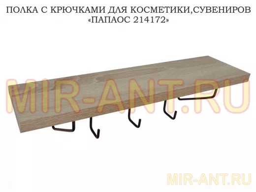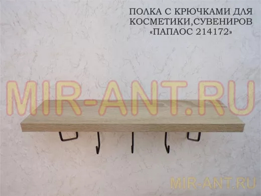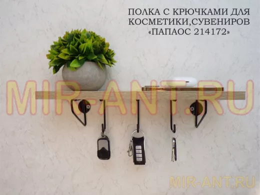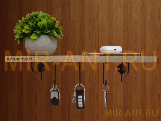 Ключница, полка с крючками в прихожую 40х10 см, высота 9 см, черный "ПАПАОС 214172" дуб сонома - MIR-ANT.RU
