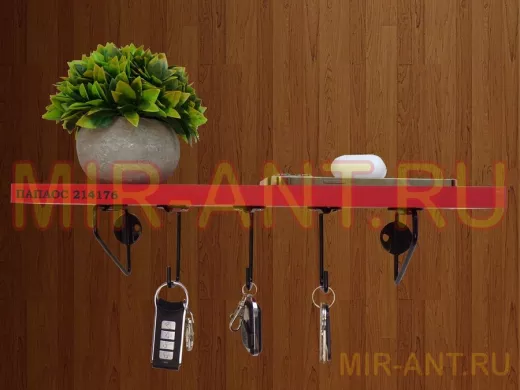 Ключница, полка с крючками в прихожую 40х10 см, высота 9 см, черный "ПАПАОС 214176" красный - MIR-ANT.RU