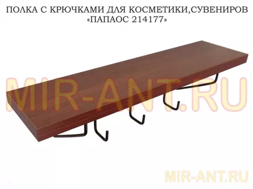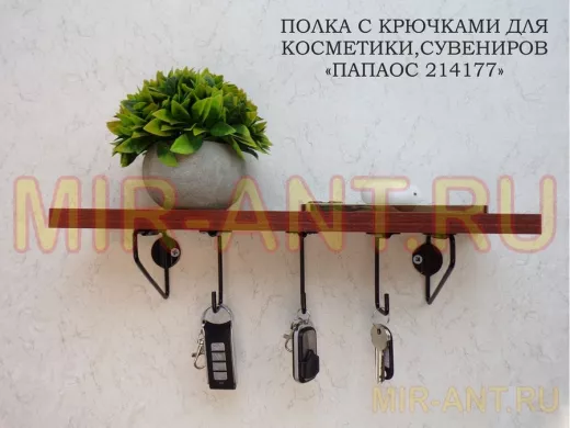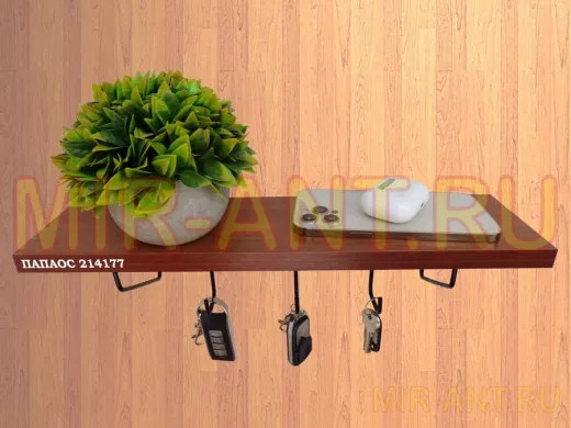 Ключница, полка с крючками в прихожую 40х10 см, высота 9 см, черный "ПАПАОС 214177" орех - MIR-ANT.RU