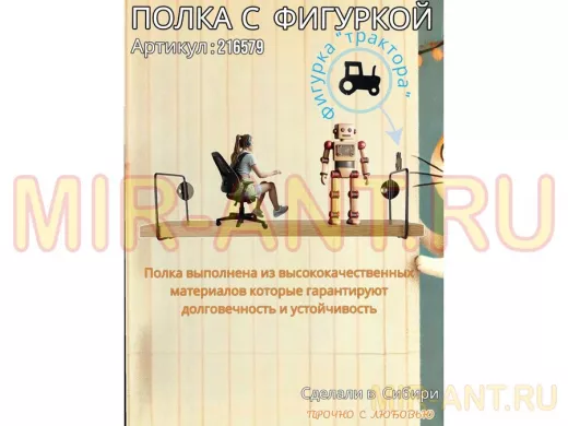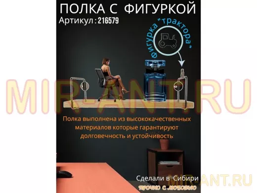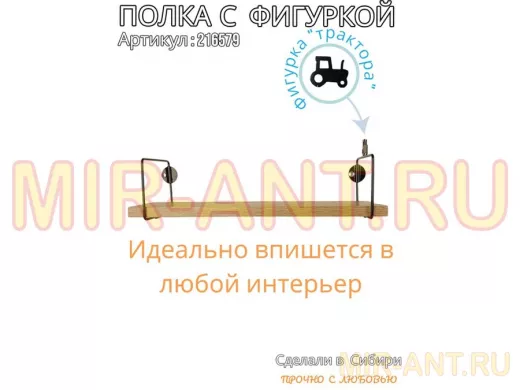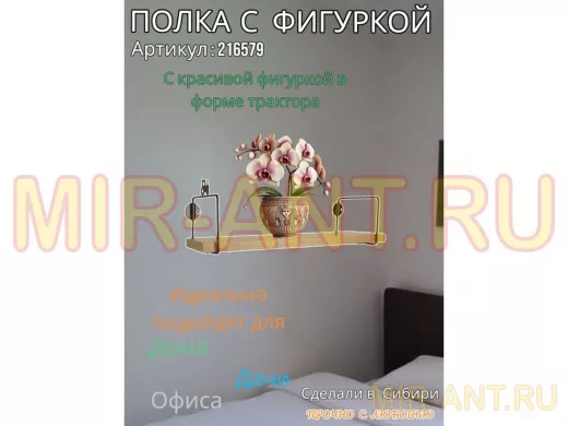 Полка с фигуркой трактора "ABILOVE-216579" размер 10х40см ,черный ,дуб сонома - MIR-ANT.RU