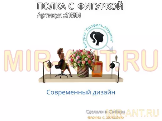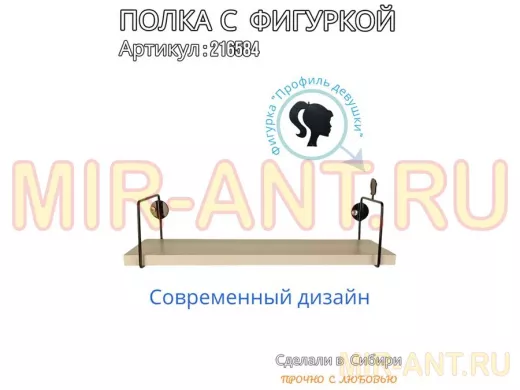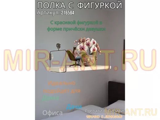 Полка с фигуркой прически девушки "ABILOVE-216584" размер 10х40см ,черный ,сосна выбеленная - MIR-ANT.RU