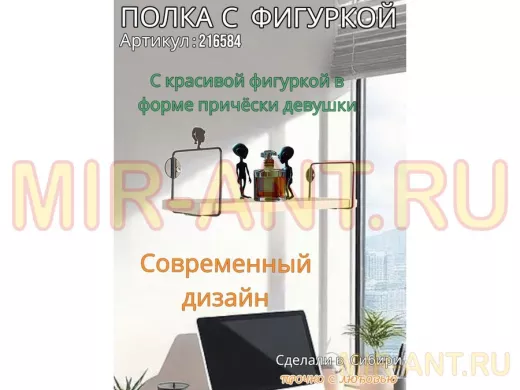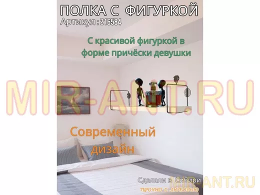 • Интересная полка с фигуркой, позволит разнообразить интерьер, сделать его непохожим, уникальным, запоминающимся.