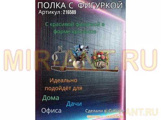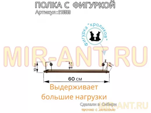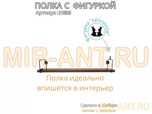 Полка с фигуркой кроликов "ABILOVE-216589" размер 10х60см ,черный ,венге - MIR-ANT.RU