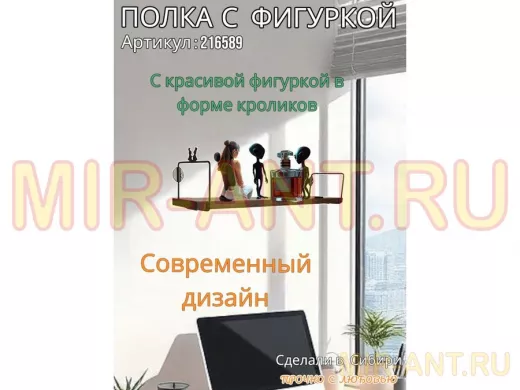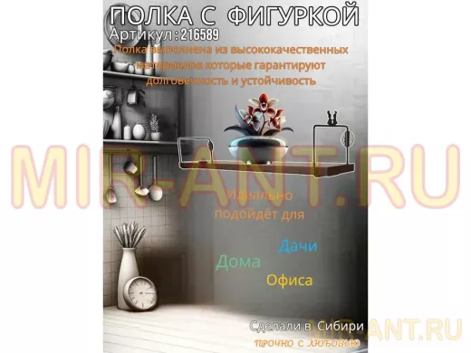 • Интересная полка с фигуркой, позволит разнообразить интерьер, сделать его непохожим, уникальным, запоминающимся.