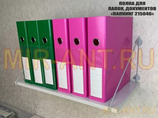 • Полка надежно крепится к стене при помощи анкеров или шурупов с дюбелями, на ней можно разместить папки, документы,бумагу и многое другое