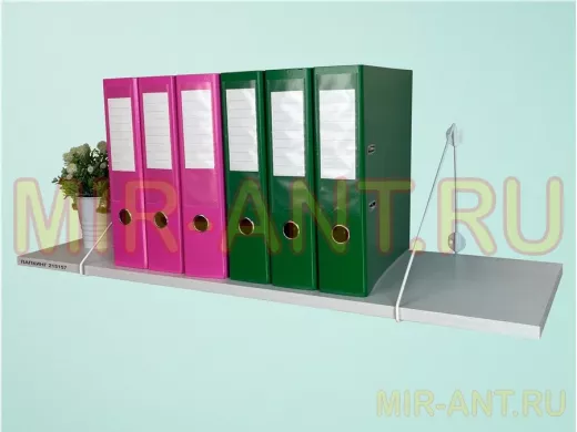 • Полка надежно крепится к стене при помощи анкеров или шурупов с дюбелями, на ней можно разместить папки, документы
