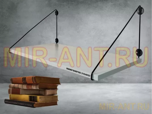Полка для книг "КНИГОКРЕП 215057" высота 26 см размер 60х30 см черный и сосна выбеленная - MIR-ANT.RU