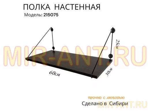 В корзину Купить в 1 клик Полка для книг "КНИГОКРЕП 215075" высота 26 см размер 60х30 см черный и венге