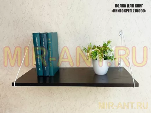 Полка для книг "КНИГОКРЕП 215090" высота 26 см размер 60х30 см белый и венге - MIR-ANT.RU