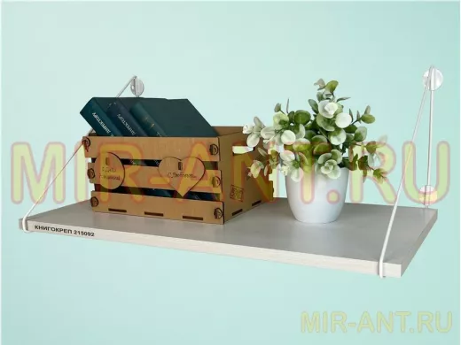 Полка для книг "КНИГОКРЕП 215092" высота 26 см размер 60х30 см белый и сосна выбеленная - MIR-ANT.RU